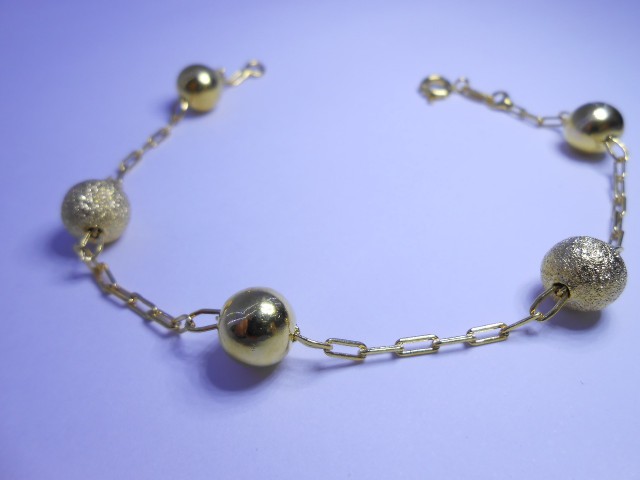 Pulseira folheada a ouro bola fosca mista 20cm R$25,00