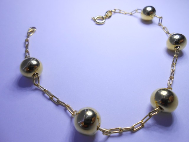 Pulseira folheada a ouro bola lisa 19,5cm R$22,00