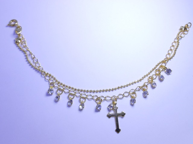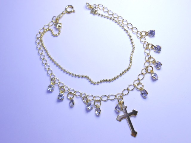 Pulseira folheada a ouro terço cruz com strass 19 cm R$32,00